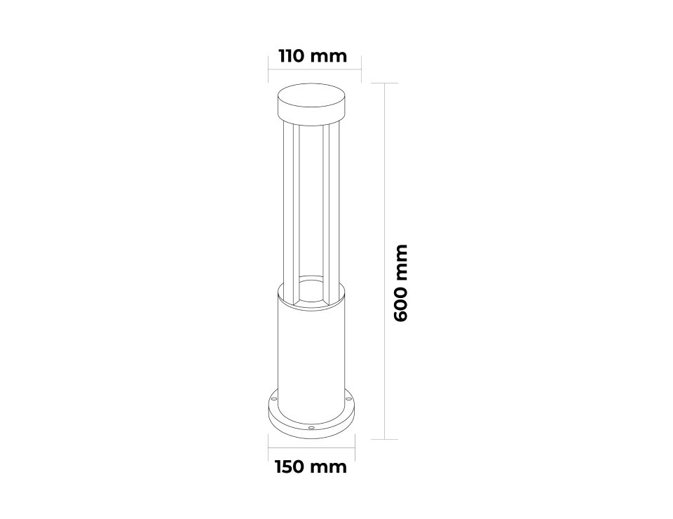 Светильник столбик, LED 10Вт, 3000K, 220В, Аллюминий,Черный песок, Ø110x600mm, IP65, 29113 1