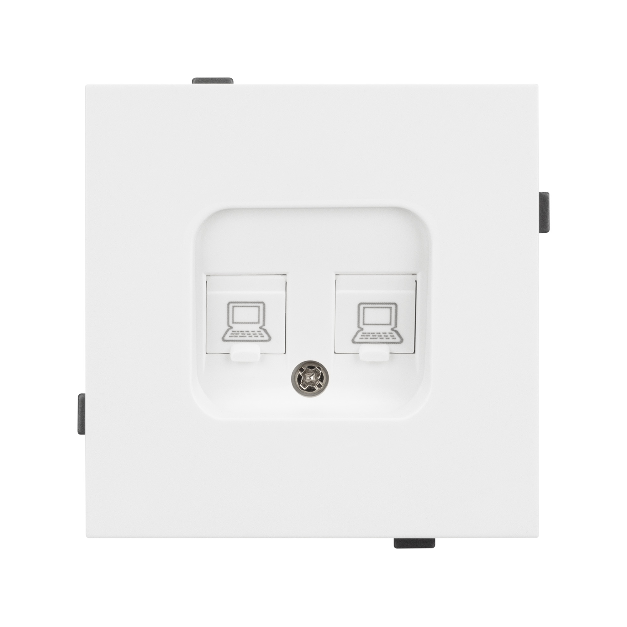 Механизм компьютерной розетки на 2 поста 6-й категории. Цвет - белый. Без фронтальной рамки. Уровень пылевлагозащиты IP20. Розетка устанавливается в стандартный подрозетник круглого сечения диаметром 60мм.