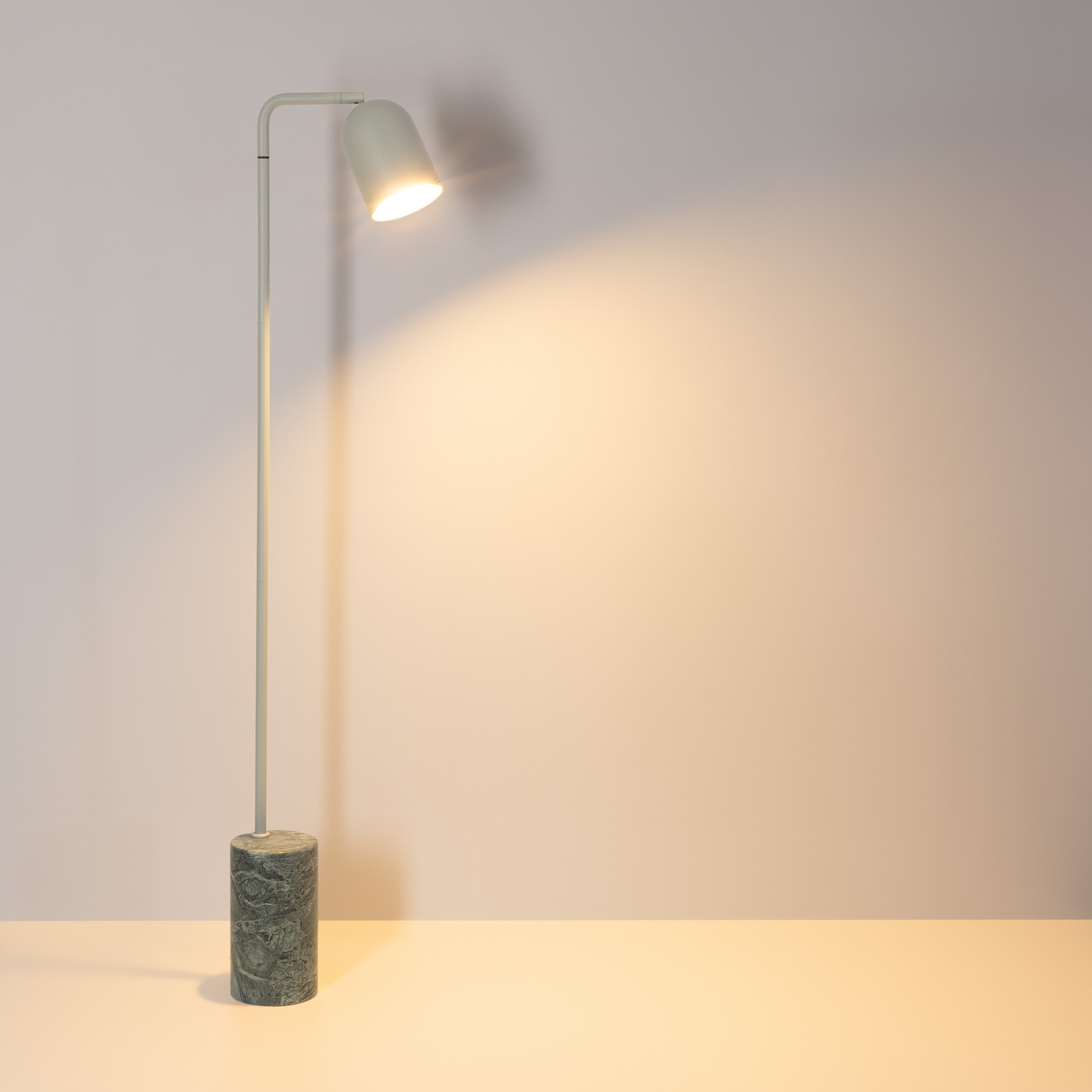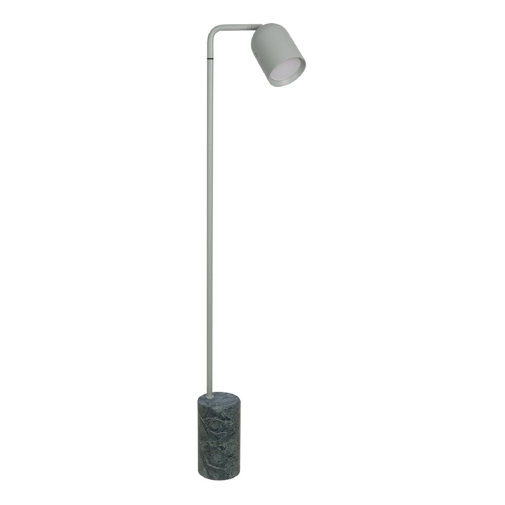 Напольный светильник MASON. Мощность 6 Вт, световой поток 530 лм,  световая эффективность - 88 лм/Вт, с изменяемой цветовой температурой 2700/3200/4000K, CRI>90, угол 120°, напряжение питания 230 В. Корпус светло голубого цвета из алюминия, напольная база из натурального камня (зеленый мрамор). Cтепень пылевлагозащиты: IP20. Размеры: диаметр плафона 120 мм, высота плафона 170 мм, диаметр напольной базы 140 мм, общая высота светильника 1430 мм. Цвет и текстура камня могут отличаться.