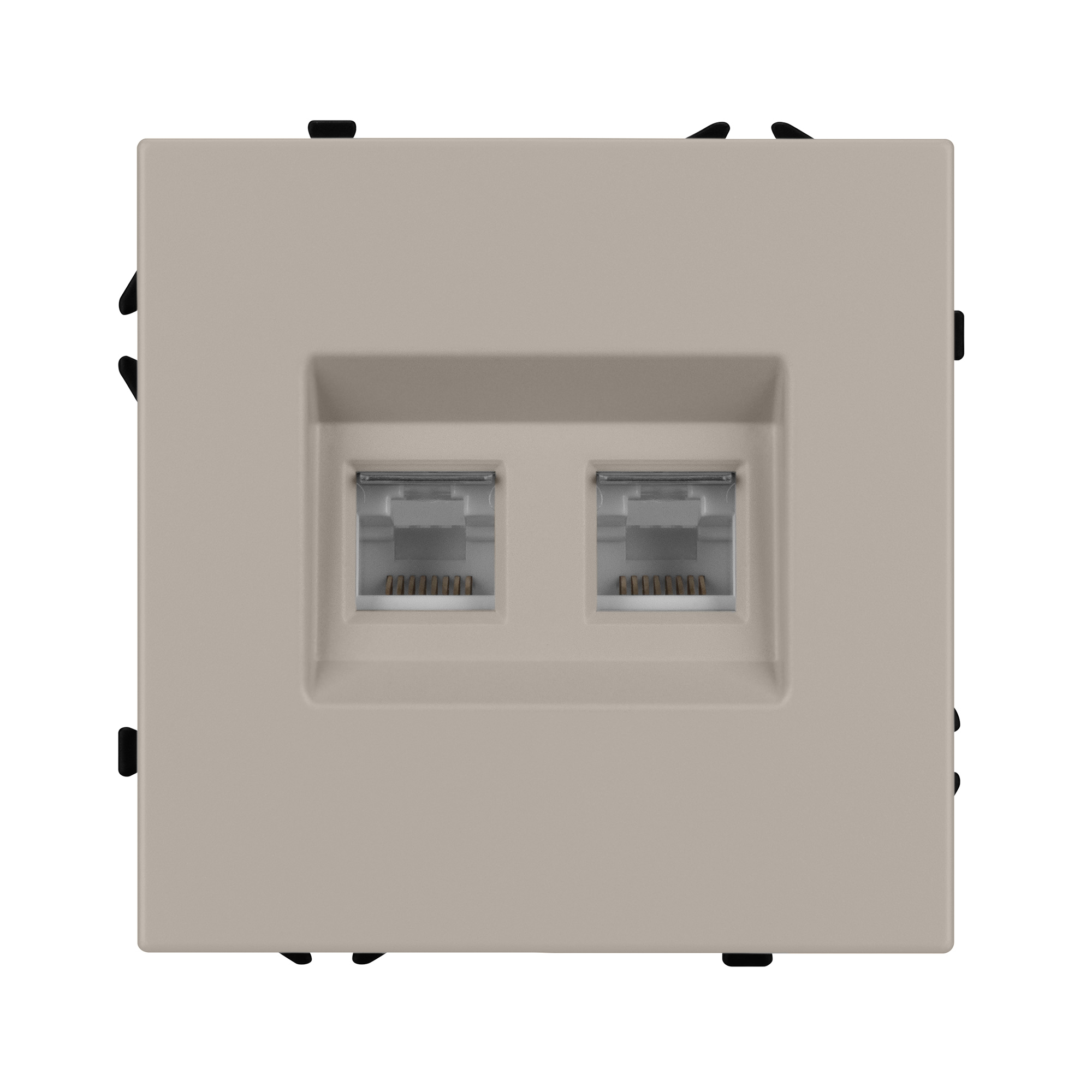 Механизм компьютерной розетки на 2 поста 6-й категории. Цвет - кашемир, с Soft-Touch поверхностью. Без фронтальной рамки. Уровень пылевлагозащиты IP20. Тип подключаемого разъема - RJ45. Розетка устанавливается в стандартный подрозетник круглого сечения диаметром 60мм.