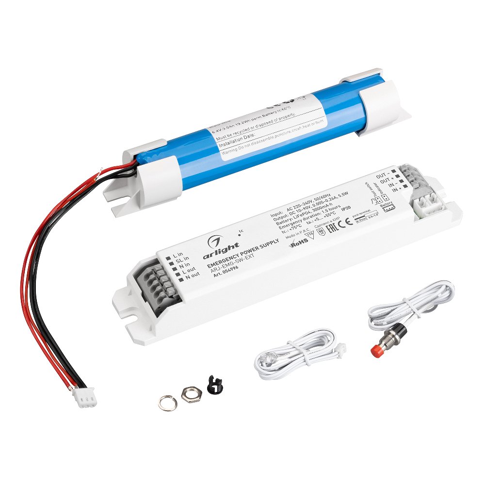 Блок аварийного питания ARJ-EMG-5W-EXT (10-90V, 1.5H, LiFePO4) (Arlight, IP20 Пластик, 3 года)