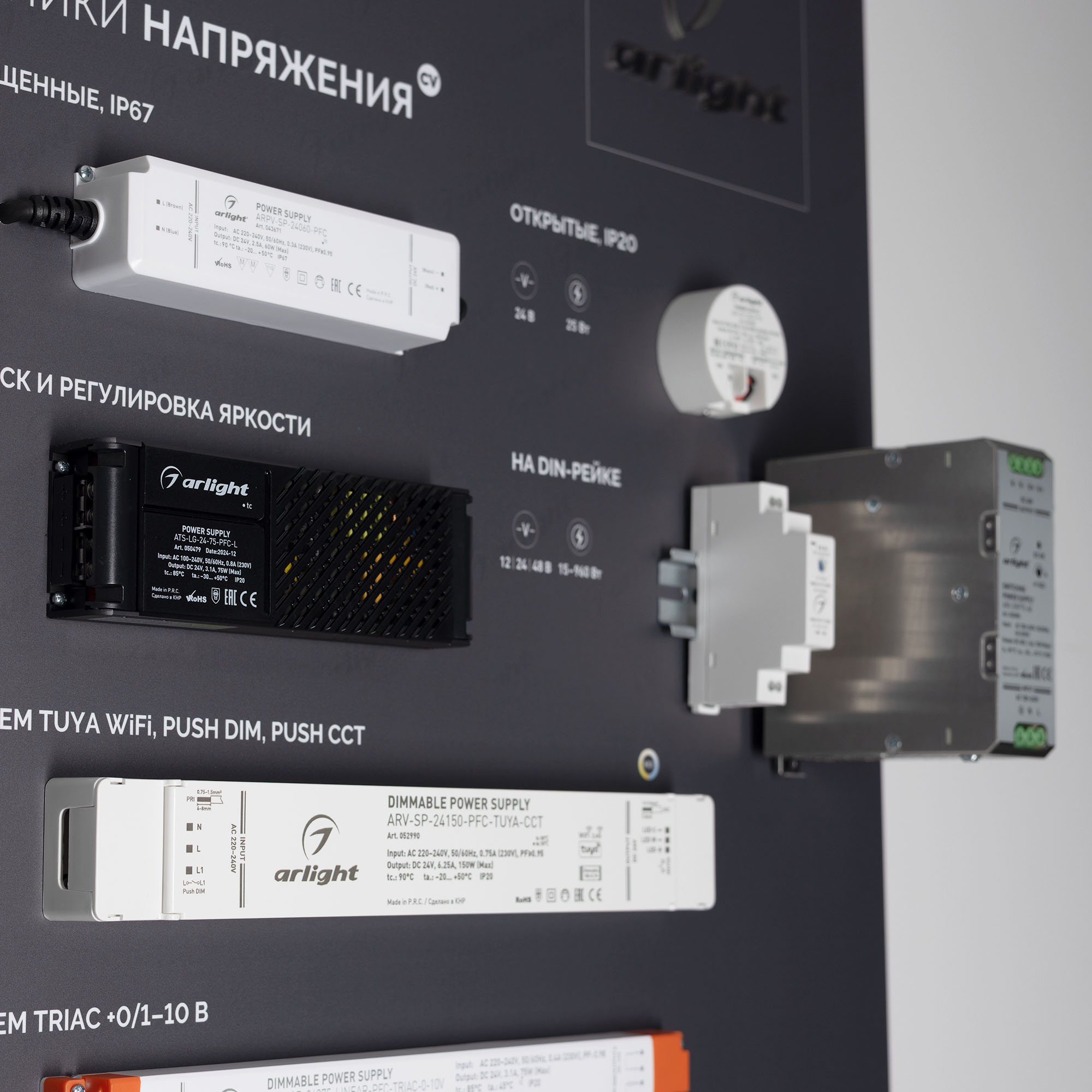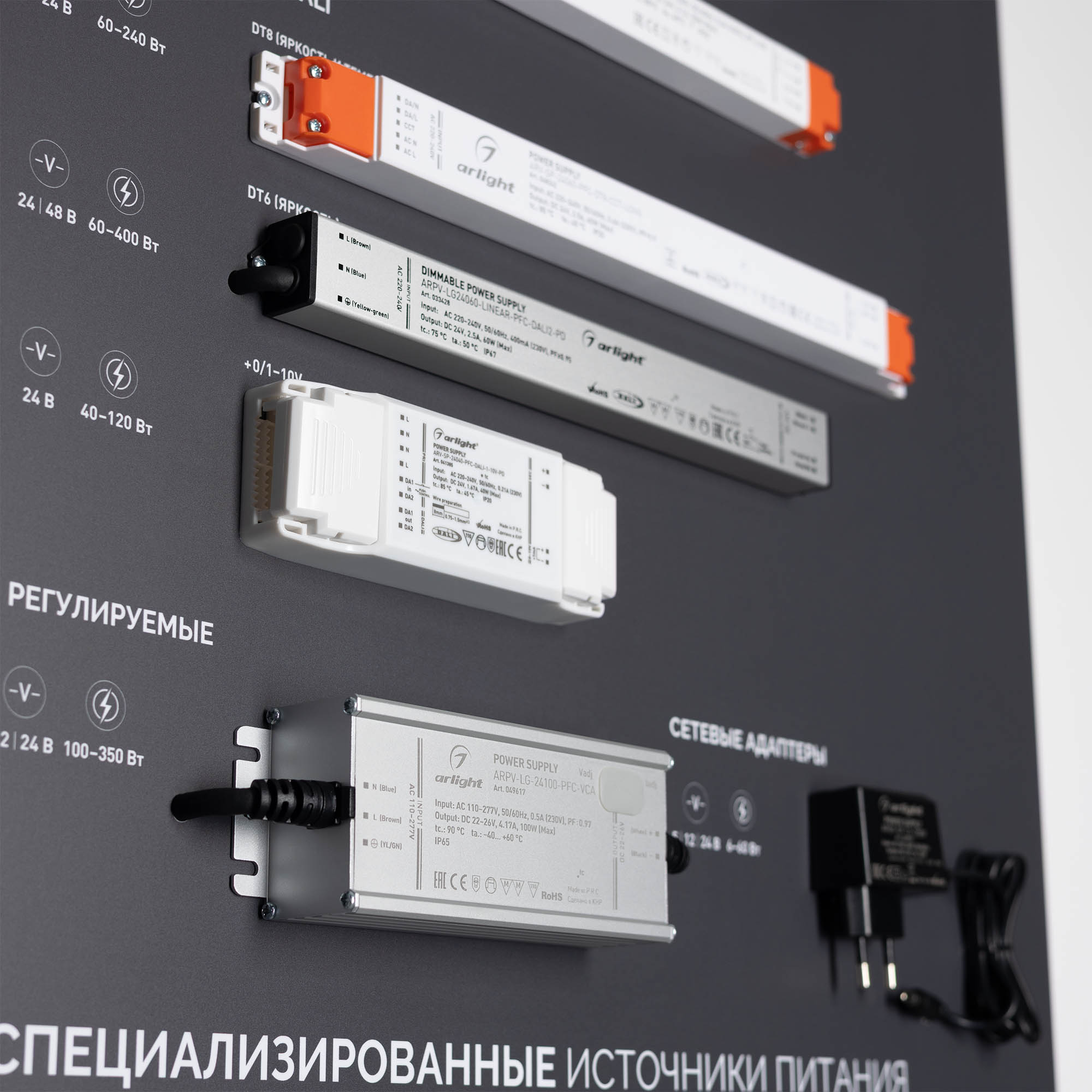 Показаны варианты встройки блоков питания в ниши и в профиль.
